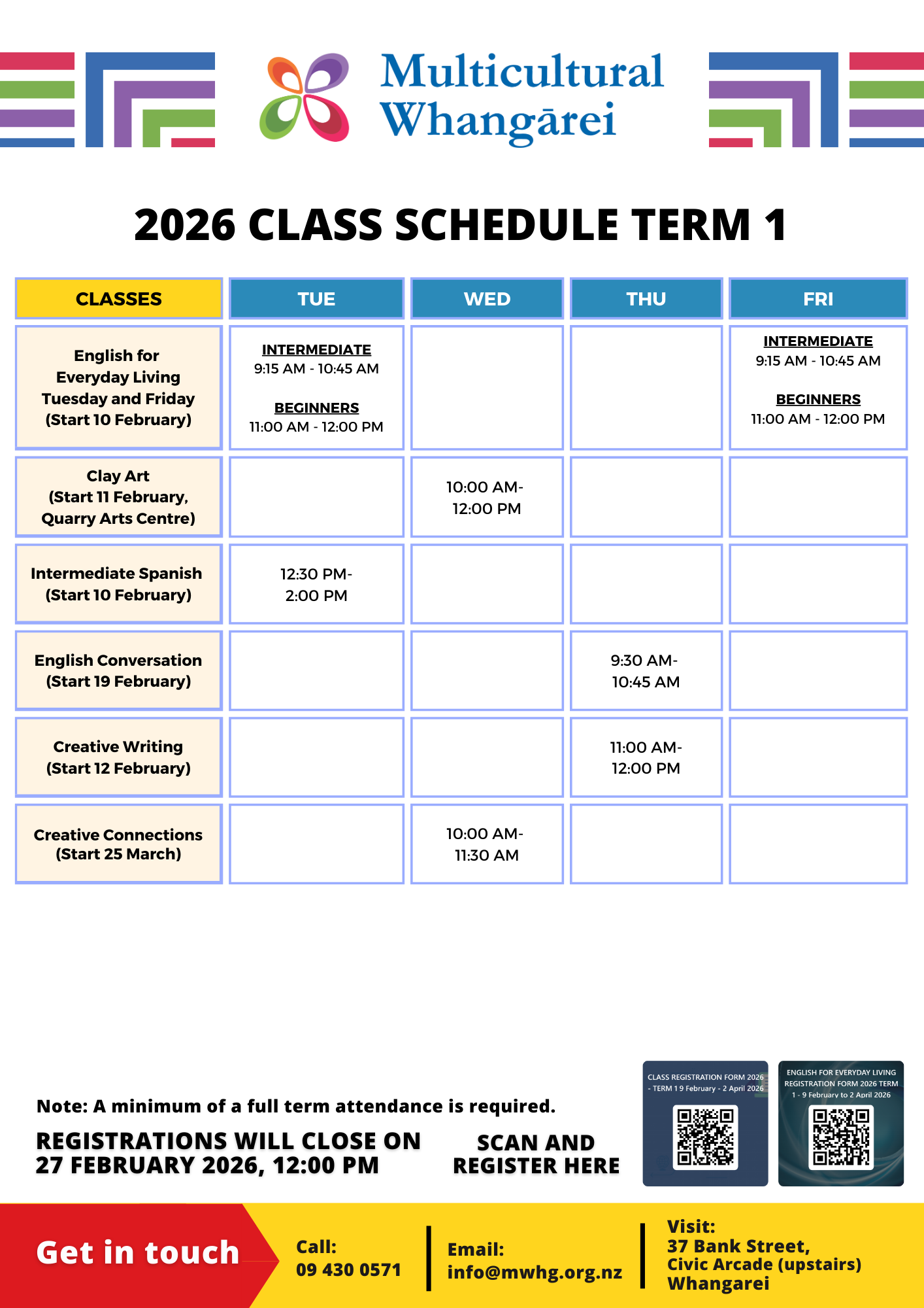 Whether you’re keen to learn a new language, build your English skills, or express yourself creatively, we offer a range of welcoming, small-group classes designed to help you grow and feel at home in Whangārei.